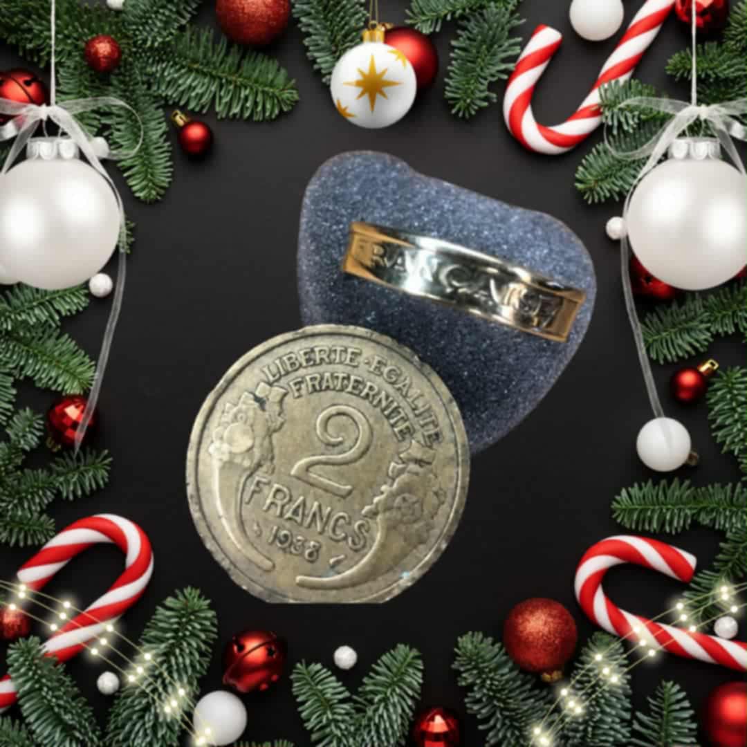 Prenez des risques avec l'Anneau 2 Franc Morlon en Laiton. Un anneau unique, réalisé à partir d'une véritable pièce de monnaie de 2 Francs Morlon. Armez-vous de Liberté, Égalité et Fraternité avec son inscription à l'intérieur. Large de 5mm, disponible pour les années 1931 à 1941. Fait sur mesure pour vous!